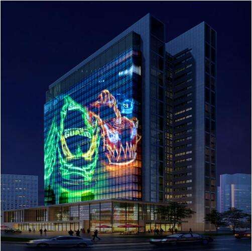 这种LED显示技术的设计极大地减少了结构部件对视线的阻挡,大限度的提高了透视效果。同时还具有新颖独特的显示效果,观众站在理想距离观看,画面像悬浮于玻璃幕墙之上。